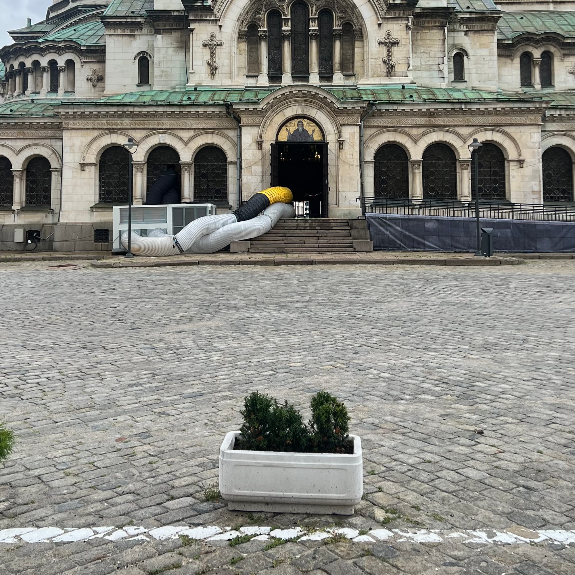Както и да е - трафикът беше спрян, гонките с дрифтъри изчезнаха, тук-там изникнаха автоматични колчета, но преди всичко - храмът-паметник беше ограден с кашпи. Най-лесният и евтин начин да се покаже трансформацията. То е същото, но всъщност не е.